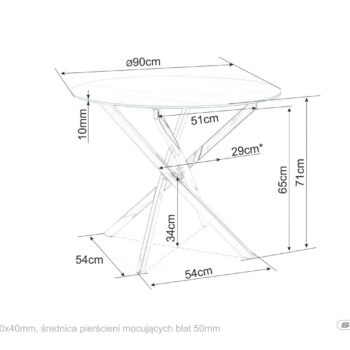 - Kompaktne dimenzije: Okrogla oblika s premerom 90 cm omogoča optimalno izrabo prostora, idealno za manjše jedilnice ali dnevne sobe.