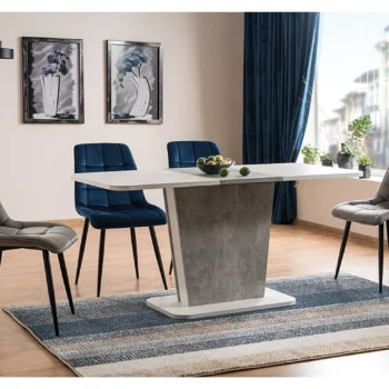 - Sodoben videz : Kombinacija bele mat barve in betonskega učinka.