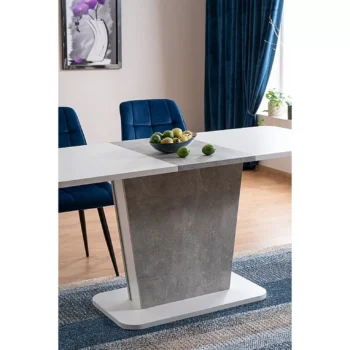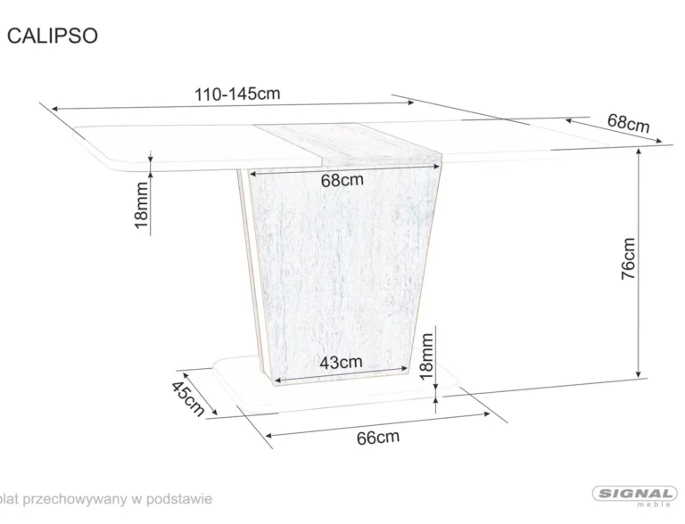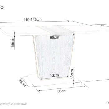 - Razširljivost : Osnovna dolžina mize je 110 cm, z dodatnim podaljškom, skritim v nogi mize, pa jo je mogoče podaljšati na 145 cm, kar omogoča namestitev do 6 oseb.