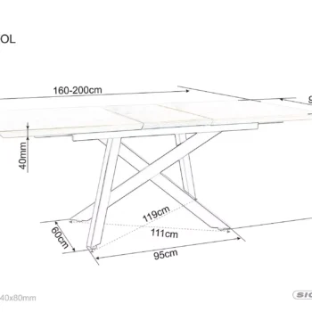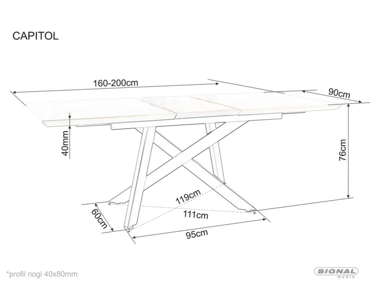 - Razširljiva zasnova: Dolžino mize je mogoče povečati s 160 cm na 200 cm, kar ustreza vašim potrebam.