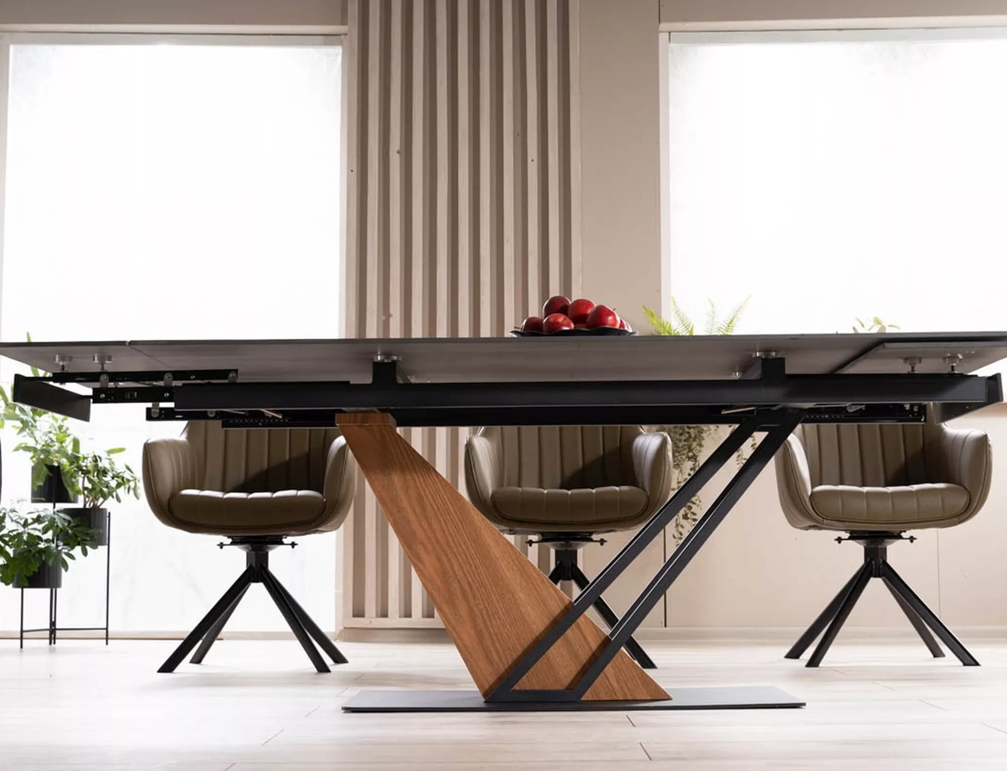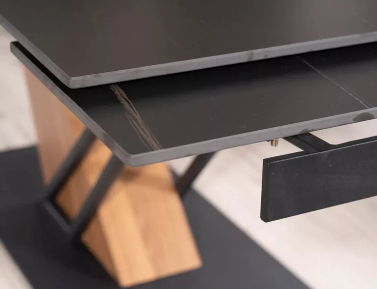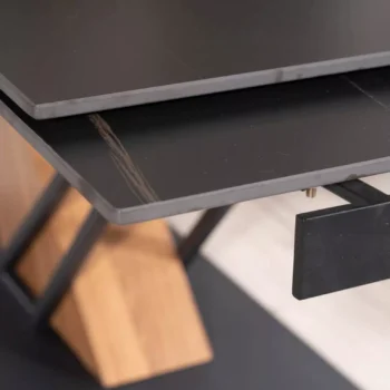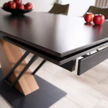 - Razširljivost: Preprost mehanizem omogoča povečanje dolžine mize s 160 cm na 220 cm, kar omogoča prilagajanje različnim potrebam.