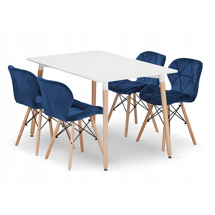 Miza 120×80 bela + 4 modri stoli LAGO: