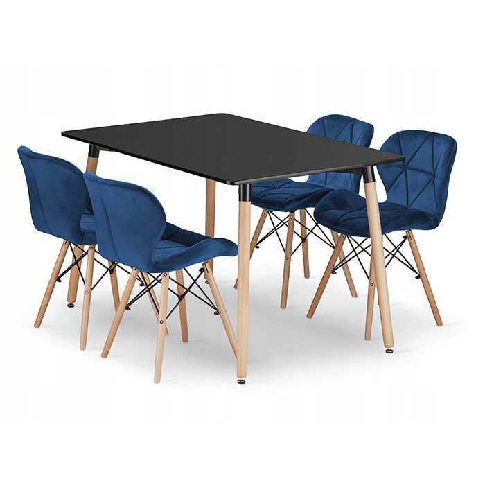 Miza 120×80 črna + 4 modri stoli LAGO: