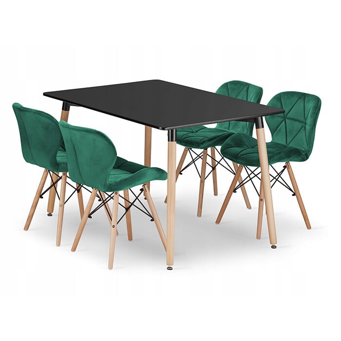 Miza 120×80 črna + 4 zeleni stoli LAGO: