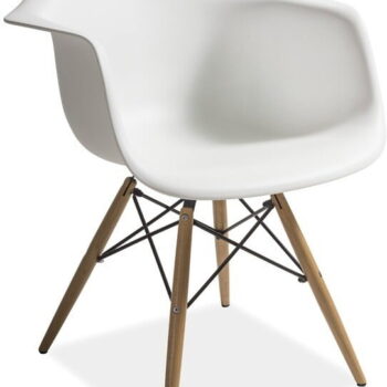 Teža: 5,3 kg Sedež iz PP, barva: bela/črna Stojalo: kombinacija bukovega lesa in kovine dimenzije: skupna višina: 79 cm, višina sedeža: 46 cm, širina in globina: 62 x 62 cm