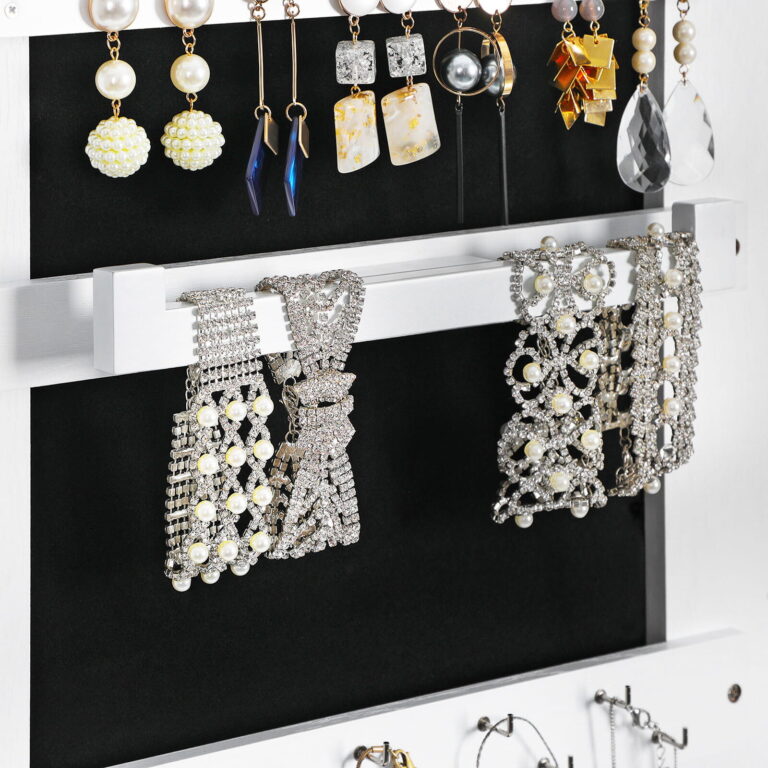 Če cenite praktičnost in želite imeti svoj najljubši nakit vedno pri roki, je ta izdelek idealen za vas. Poleg organizacije vaše zbirke nakita vam bo pomagal tudi pri ohranjanju urejenosti vaše toaletne mizice. Ta izdelek 2 v 1 združuje omarico za nakit z ogledalom, kar vam ponuja vse, kar potrebujete, na enem mestu. Je odlična izbira za vse, ki želijo v svojem prostoru združiti funkcionalnost in estetiko.
