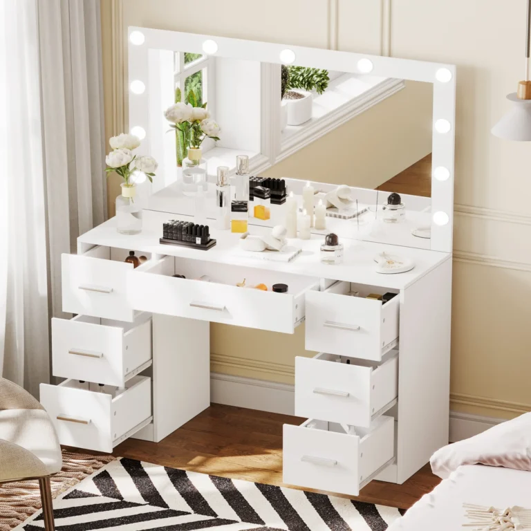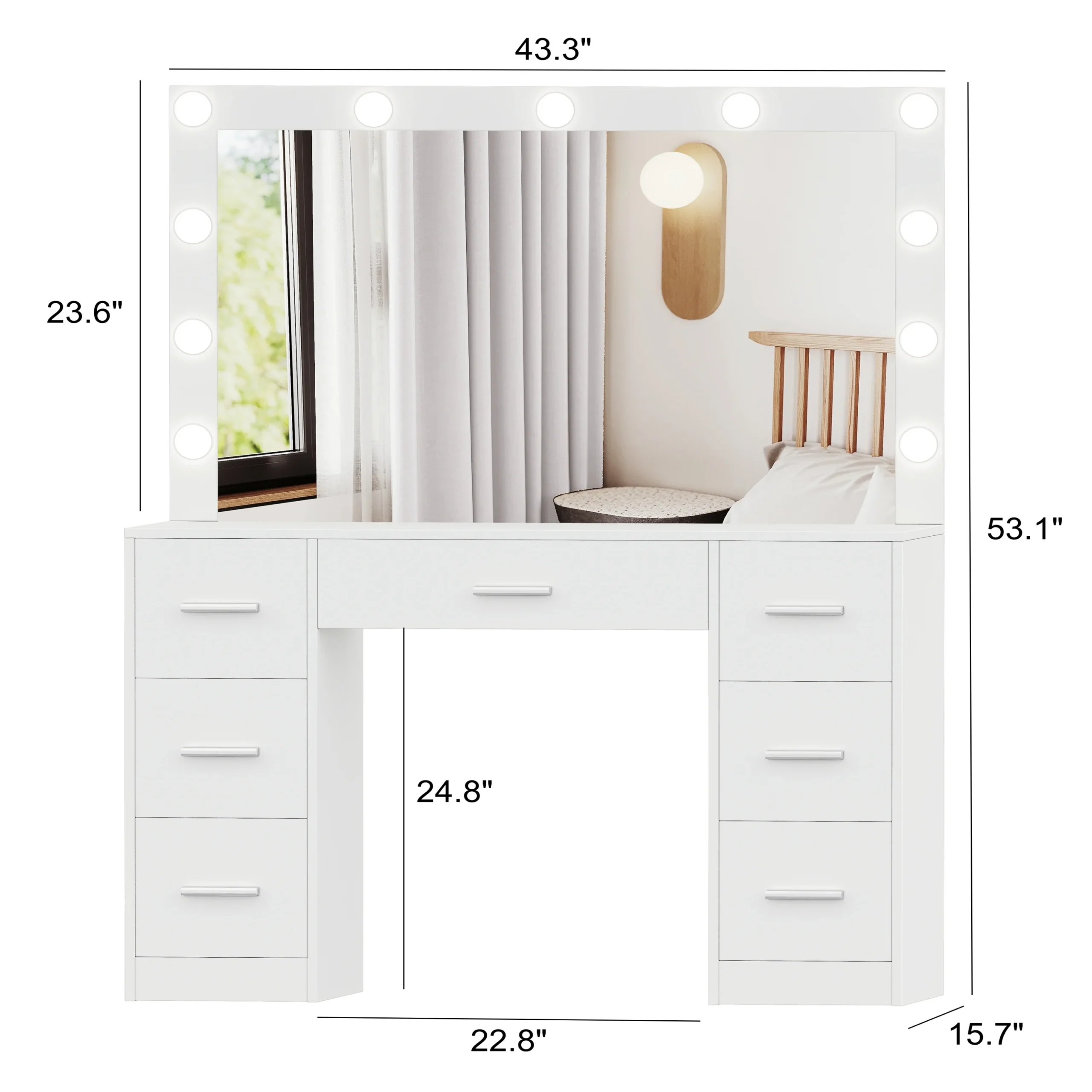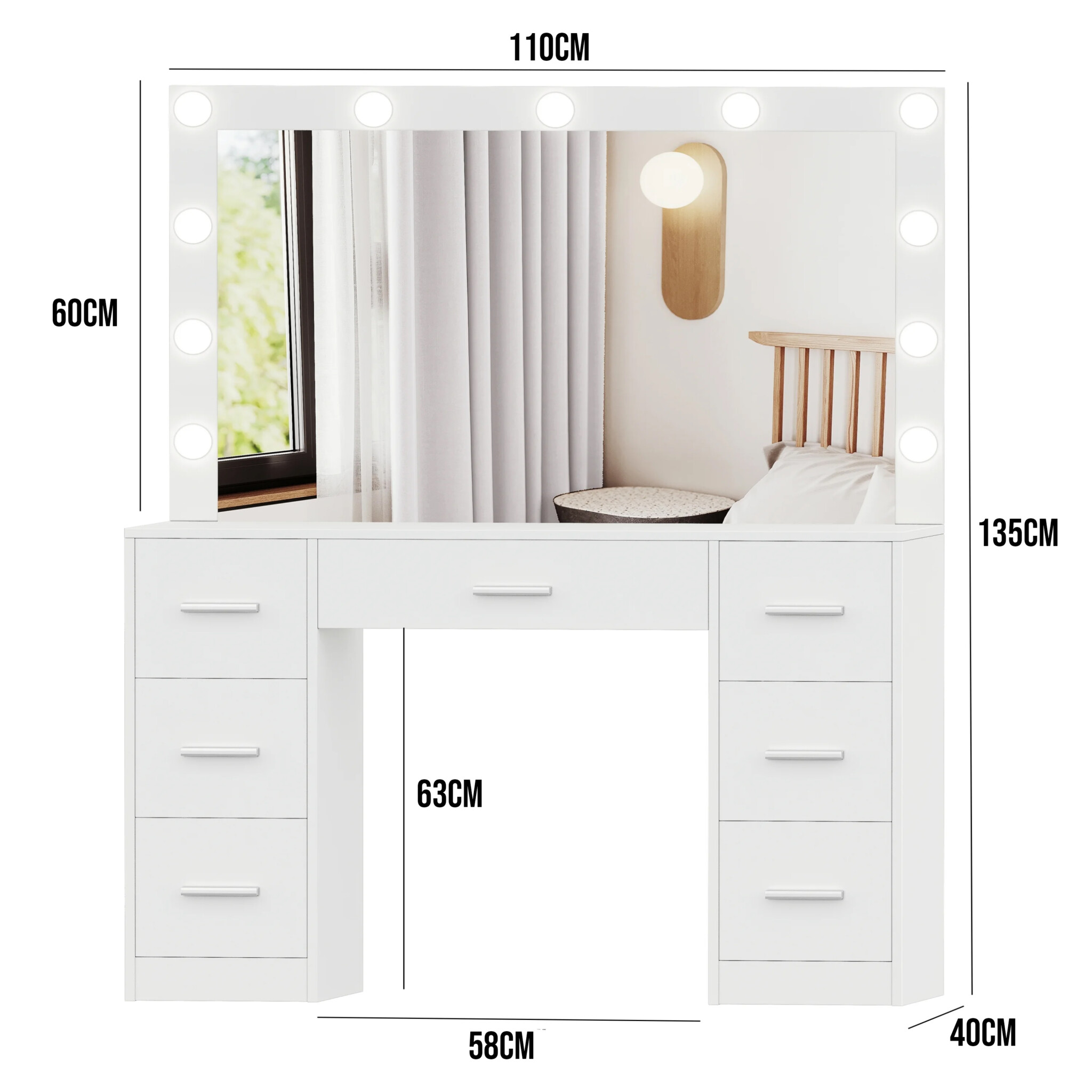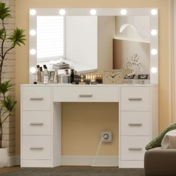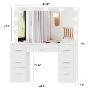 Pripravite se na odličen začetek dneva s to toaletno mizico z ogledalom in LED osvetlitvijo. Ogledalo ima 11 LED žarnic.