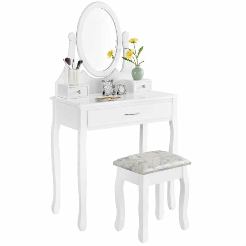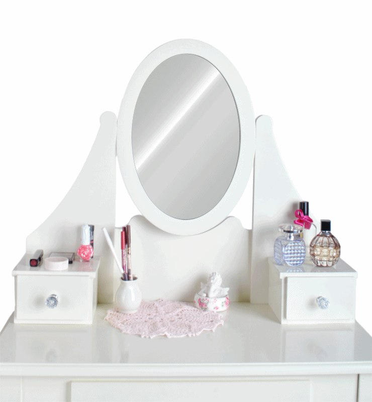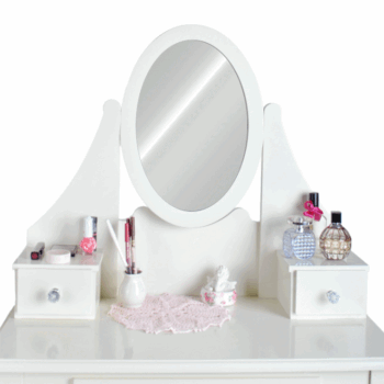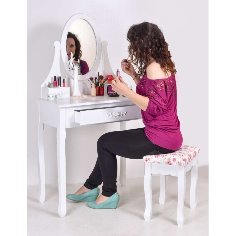 Toaletna mizica Amelie v slogu Shabby Chic Komplet vključuje udoben stol Vrtljivo ogledalo ✅ CE certifikat Dimenzije: 75 cm dolžina x 137 cm višina x 40 cm globina
