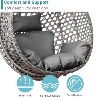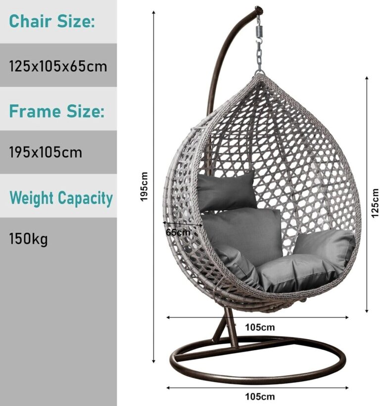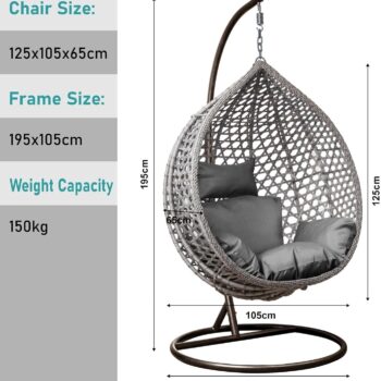 SPROSTITEV V STILU! Viseči fotelj Cocoon Archipelago siv Izdelan in zasnovan za ljudi, ki cenijo udobje in kakovost. Dimenzije fotelja (sedežnega dela): 125x105x65 cm Skupne dimenzije visečega fotelja: 195×105 cm Največja obremenitev 150 kg Udobne in mehke blazine Stabilno, okroglo, jekleno podnožje s profiliranimi okvirji Hitra montaža v samo nekaj minutah Varno zapakirano Popolno za vrt, teraso ali celo dnevno sobo. Material košare: sintetični ratan ZAKAJ IZBRATI NAŠ VISEČI FOLTER COCOON? Ponujamo jih že skoraj 10 let. Viseči fotelj Cocoon je prava kombinacija dobrega stila, odličnega dizajna in ergonomije. Popolnoma se prilega terasi, balkonu ali kateri koli zunanjosti ali celo notranjosti. Zahvaljujoč svojim lastnostim je idealen za otroke, najstnike in odrasle. Preverjena kakovost! Masivne in udobne blazine s prevleko. Ojačan kavelj za sedež z robustno verigo. Globina košare naredi viseči fotelj Cocoon zelo udoben in estetsko privlačen. Elementi, ki stabilizirajo strukturo, zagotavljajo varnost in udobje uporabe. Easter2025 cistimoskladiste25