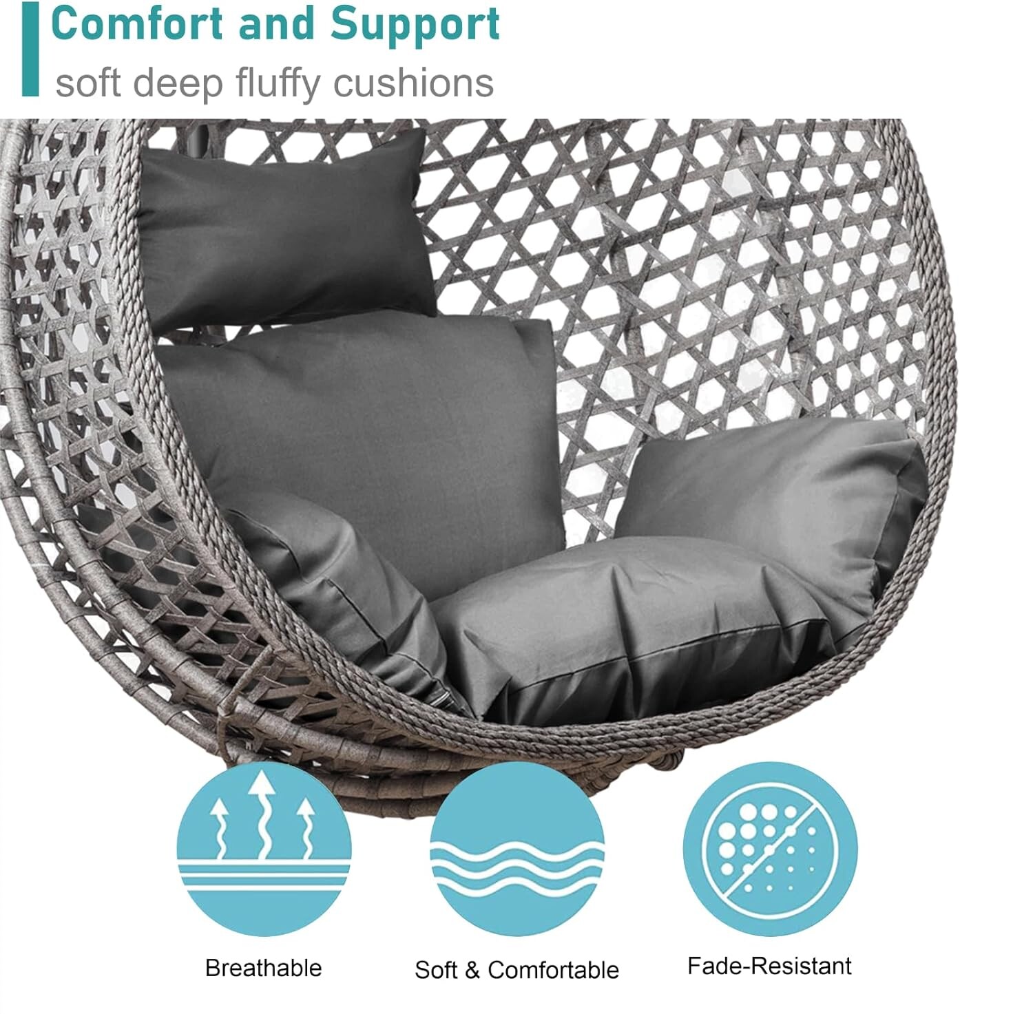 SPROSTITEV V STILU! Viseči fotelj Cocoon Archipelago siv Izdelan in zasnovan za ljudi, ki cenijo udobje in kakovost. Dimenzije fotelja (sedežnega dela): 125x105x65 cm Skupne dimenzije visečega fotelja: 195×105 cm Največja obremenitev 150 kg Udobne in mehke blazine Stabilno, okroglo, jekleno podnožje s profiliranimi okvirji Hitra montaža v samo nekaj minutah Varno zapakirano Popolno za vrt, teraso ali celo dnevno sobo. Material košare: sintetični ratan ZAKAJ IZBRATI NAŠ VISEČI FOLTER COCOON? Ponujamo jih že skoraj 10 let. Viseči fotelj Cocoon je prava kombinacija dobrega stila, odličnega dizajna in ergonomije. Popolnoma se prilega terasi, balkonu ali kateri koli zunanjosti ali celo notranjosti. Zahvaljujoč svojim lastnostim je idealen za otroke, najstnike in odrasle. Preverjena kakovost! Masivne in udobne blazine s prevleko. Ojačan kavelj za sedež z robustno verigo. Globina košare naredi viseči fotelj Cocoon zelo udoben in estetsko privlačen. Elementi, ki stabilizirajo strukturo, zagotavljajo varnost in udobje uporabe. Easter2025 cistimoskladiste25