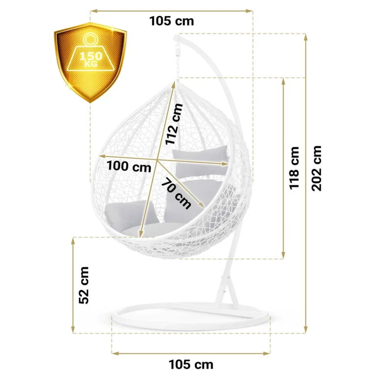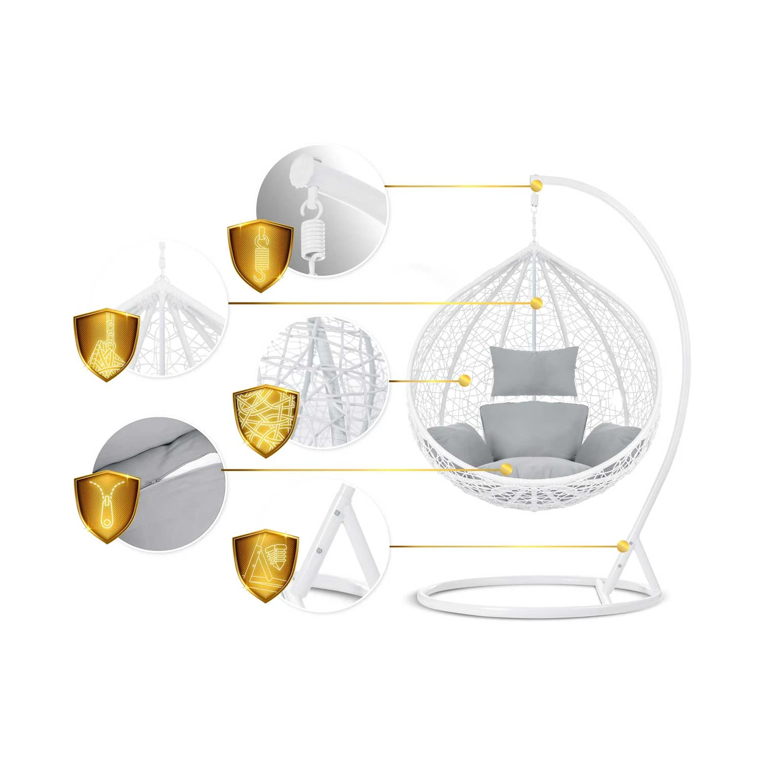 - Preverjena kakovost! Masivne in udobne blazine. Ojačan kavelj za sedež z robustno verigo. Globina košare naredi viseči stol Cocoon zelo udoben in estetsko privlačen.