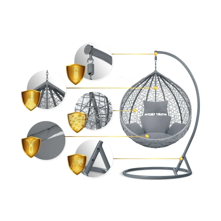 - Preverjena kakovost! Masivne in udobne blazine. Ojačan kavelj za sedež z robustno verigo. Globina košare naredi viseči stol Cocoon zelo udoben in estetsko privlačen.