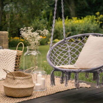 TAKOJ NA VOLJO ♀️ Viseči stol v obliki gnezda, idealen kraj za počitek in sprostitev Moderna oblika, ki se prilega vsaki ureditvi in slogu Popoln za vrt, balkon ali notranji prostor ✅ Udobna blazina je priložena ♻️ Naravni material zagotavlja pretok zraka v vročih poletnih mesecih Največja obremenitev do 150 kg ️ 2 načina montaže: – klasična z vrvmi ob strani, ki omogoča nihanje naprej/nazaj – povezovalni obroči, ki omogočajo enostavno rotacijsko gibanje