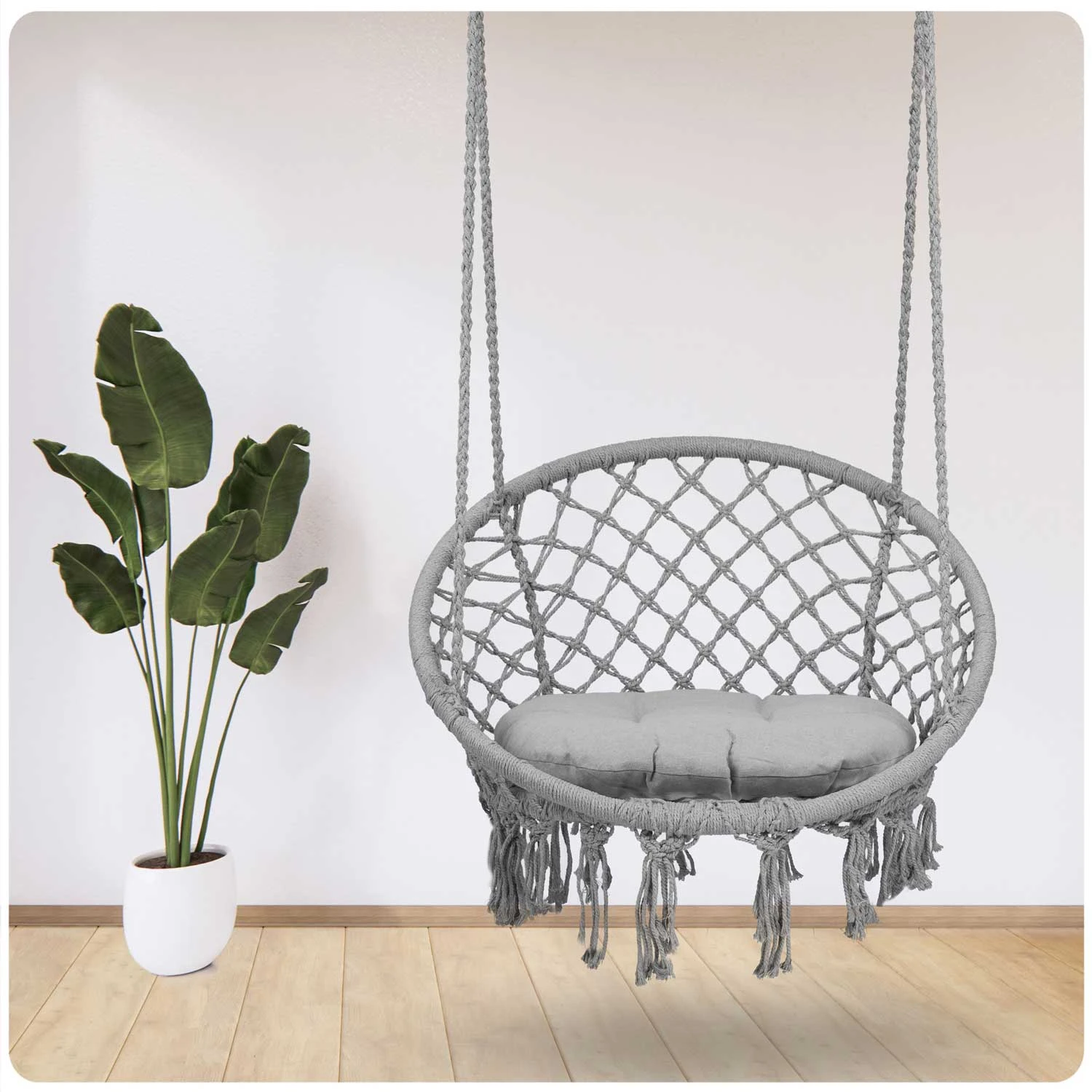 TAKOJ NA VOLJO ♀️ Viseči stol v obliki gnezda, idealen kraj za počitek in sprostitev Moderna oblika, ki se prilega vsaki ureditvi in slogu Popoln za vrt, balkon ali notranji prostor ✅ Udobna blazina je priložena ♻️ Naravni material zagotavlja pretok zraka v vročih poletnih mesecih Največja obremenitev do 150 kg ️ 2 načina montaže: – klasična z vrvmi ob strani, ki omogoča nihanje naprej/nazaj – povezovalni obroči, ki omogočajo enostavno rotacijsko gibanje