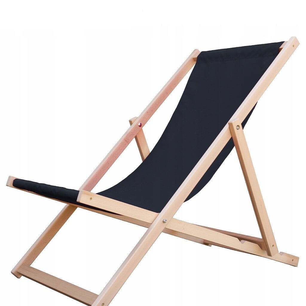 Zložljiv lesen ležalnik – Relax – črn