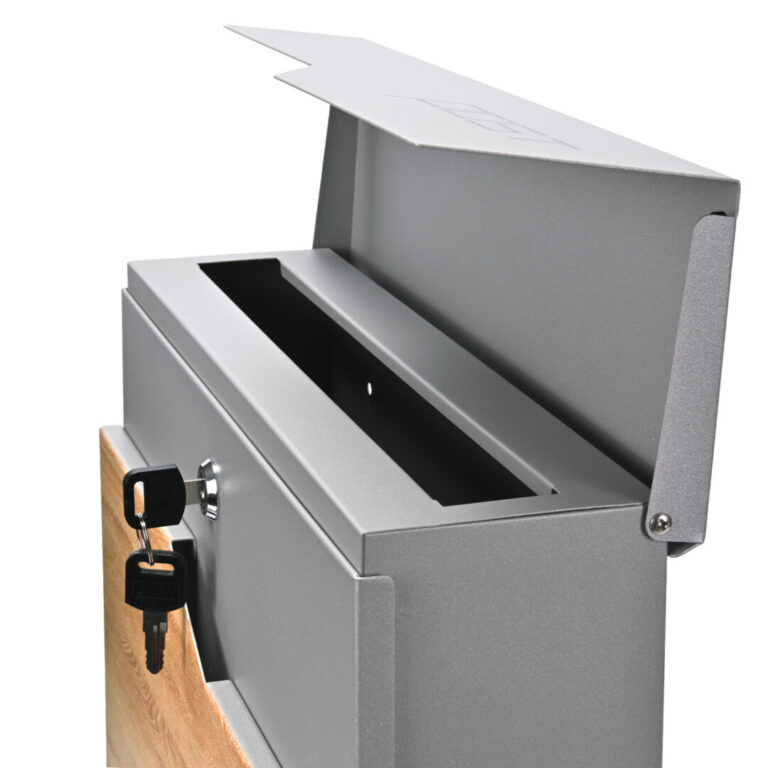 Opremljen je z dodatnim predalom za časopise. Zahvaljujoč kakovostni izdelavi je vsa vaša pošta zaščitena pred vlago, dežjem in neugodnimi vremenskimi razmerami.