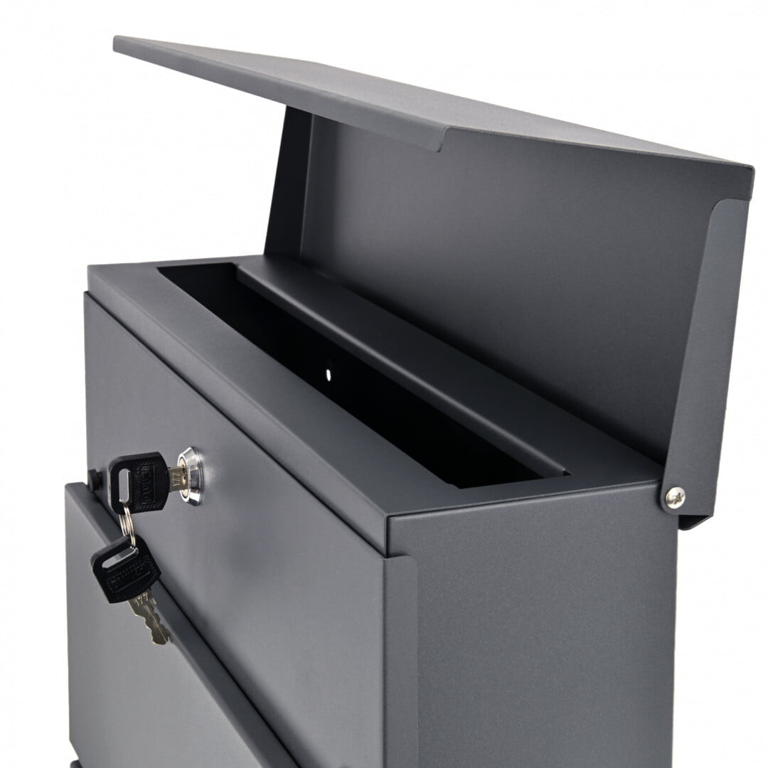 Visokokakovosten poštni nabiralnik, izdelan iz prašno barvanega pocinkanega jekla in nerjavečega jekla z dodatnim predalom za časopise. Vsa pošta je zelo dobro zaščitena pred vlago in dežjem.
