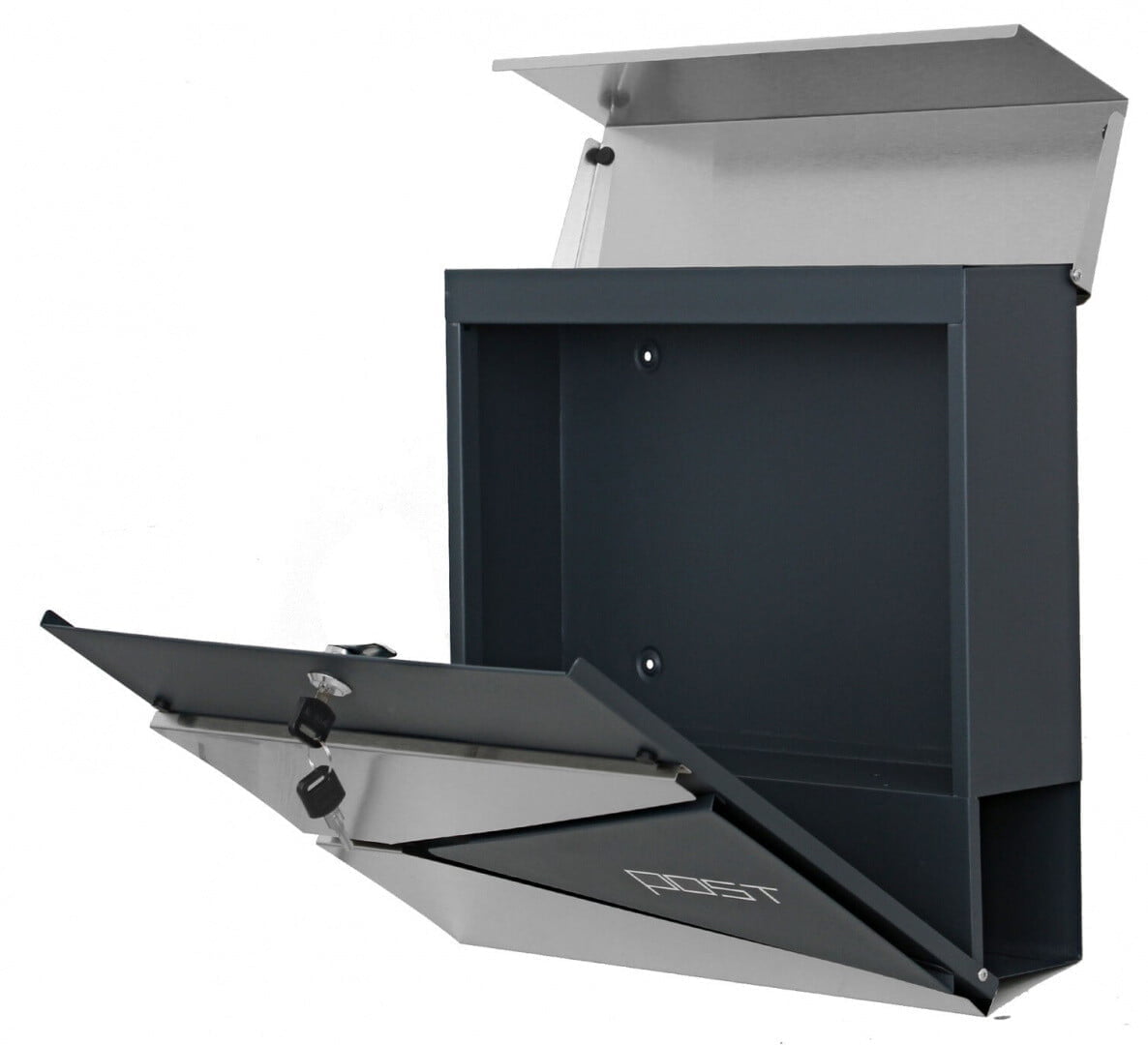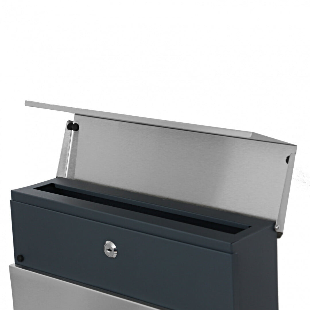 Visokokakovosten poštni nabiralnik, izdelan iz prašno barvanega pocinkanega jekla in nerjavečega jekla z dodatnim predalom za časopise. Vsa pošta je zelo dobro zaščitena pred vlago in dežjem.