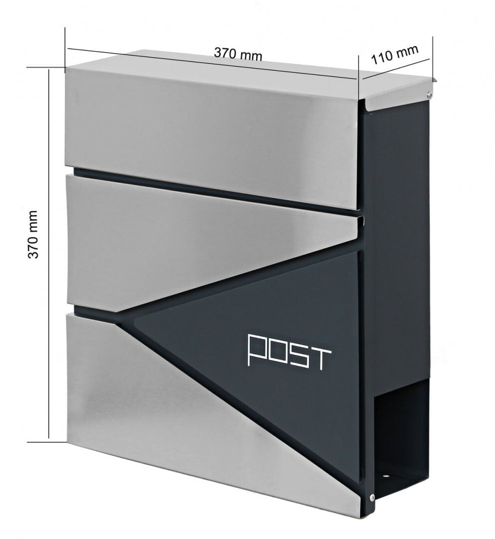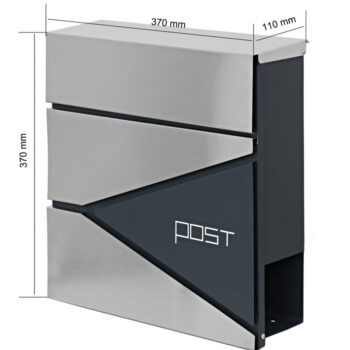 Dimenzije: 37 (višina) x 37 (širina) x 10,5 (globina) cm Dimenzije odprtine: 33 (dolžina) x 3 (širina) cm ️Vremensko odporno ️Pocinkano jeklo – barvna kombinacija antracita in nerjavečega jekla ️Držalo za časopise in letake ️2 ključa, komplet za montažo