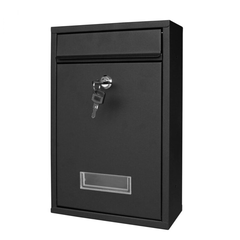 Dimenzije: 32 (višina) x 21,5 (širina) x 9 (globina) cm Dimenzije odprtine: 19 (dolžina) x 3 (širina) cm ️Vodoodporno ️Pocinkano jeklo – črna barva ️2 ključa, komplet za montažo