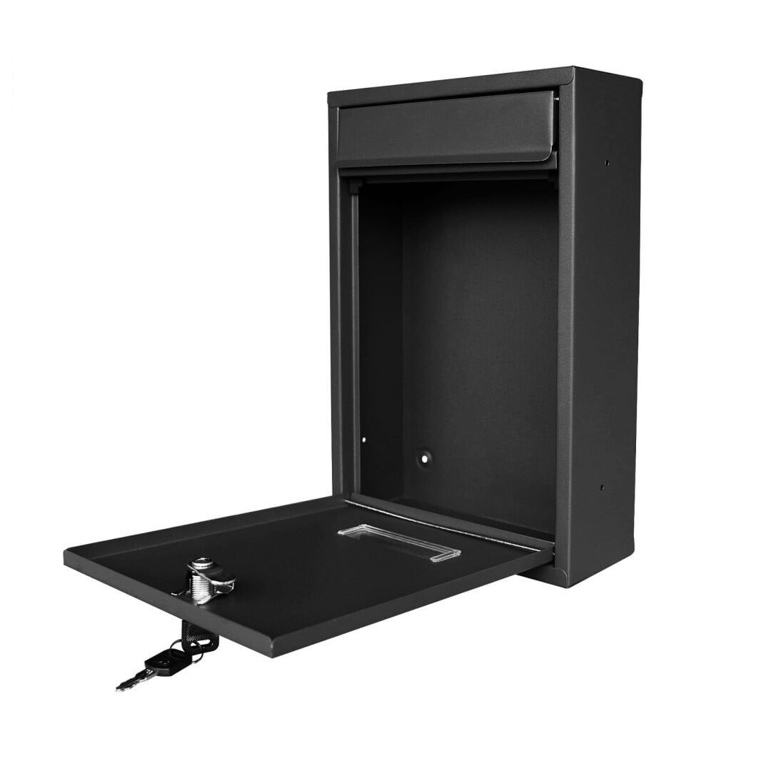 Dimenzije: 32 (višina) x 21,5 (širina) x 9 (globina) cm Dimenzije odprtine: 19 (dolžina) x 3 (širina) cm ️Vodoodporno ️Pocinkano jeklo – črna barva ️2 ključa, komplet za montažo