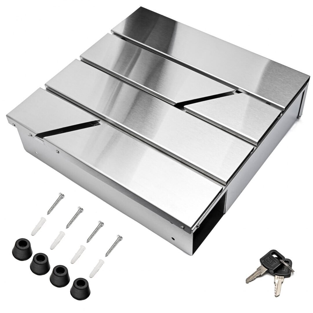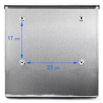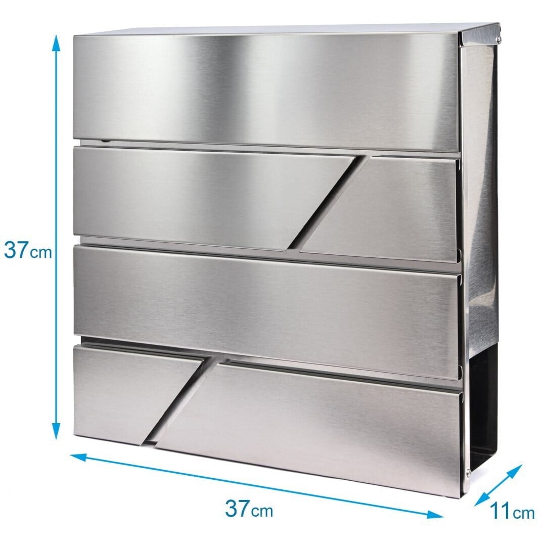 Dimenzije: 37 (višina) x 36,5 (širina) x 11 (globina) cm Dimenzije odprtine: 33,5 (dolžina) x 3,5 (širina) cm ️Vodoodporno ️Nerjaveče jeklo ️Držalo za časopise in letake ️2 ključa, komplet za montažo