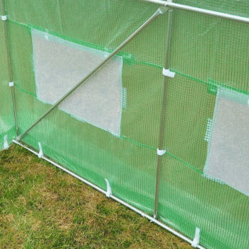 Folijski tunel je predlog za vse ljubitelje domačega vrtnarjenja – rastlinam bo zagotovil idealne pogoje za razvoj: zaščitil jih bo pred neugodnimi vremenskimi razmerami, pospešil in izboljšal pridelek ter podaljšal sezono. Folijski tunel vam omogoča uravnavanje temperature, vlažnosti in kroženja zraka, s čimer boste ustvarili pravo mikroklimo za rastline. Zaradi svoje funkcionalnosti, zanesljivosti in cene je dobra alternativa tradicionalnemu rastlinjaku. Tunel, dolg 3 m in visok 200 cm, omogoča prosto gibanje. Ima 6 zaprtih prezračevalnih oken z mrežami proti komarjem, ki omogočajo pravilno kroženje in uravnavanje temperature in vlažnosti zraka. Široka, rolo vrata z zapahom povečujejo funkcionalnost tunela. V notranjosti sta v zgornjem delu okvirja nameščeni dve prečni palici, ki zagotavljata stabilnost in omogočata privezovanje vrvi za vzpenjavke. Materiali, uporabljeni za izdelavo tunela, so visokokakovostni: konstrukcija temelji na jeklenih profilih, pocinkanih na obeh straneh, kar zagotavlja vzdržljivost in odpornost proti koroziji. Prekrit je z visokokakovostno prozorno folijo z UV4 filtrom in ima vgrajeno PP mrežico, ki ga ščiti pred trganjem. kar bo zagotovilo stabilnost in vam omogočilo tudi privezovanje vrvi za vzpenjavke. Specifikacije:
