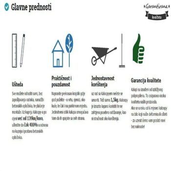 Najboljše darilo za ljubitelje vrtov. Dajte svojemu dovozu in dvoriščem nov videz. Hitro in enostavno. Material: PP plastika Dimenzije: 43×42,5x4cm Barva: črna Za večkratno uporabo – trpežen material iz PP smole, plastični kalup se lahko ponovno uporabi za ustvarjanje dvoriščnih poti, okrasitev in urejanje vašega dvorišča. Enostavna uporaba: Ni potrebnih posebnih znanj. Kalup za polnjenje z betonsko mešanico, s katero lahko tudi neizkušena oseba ustvari čudovito pot. Gladka površina, ki jo je enostavno čistiti. GARDEN ONE Najboljša rešitev za zunanjo in vrtno urejanje okolice. Vse lahko naredite sami, brez najemanja delavcev, naročanja betonskih tlakovcev in plačevanja montaže. Z nakupom Kaloopyja po ceni od 99kn/kos prihranite do 300 % v primerjavi z nakupom in montažo betonskih tlakovcev. Ustvarite čudovito pokrajino kjer koli želite – na vrtu, v gazebu, okoli hiše, celo na parkirišču. Edinstvena oblika kalupa vam omogoča, da jih povežete z vseh strani. Pri delu s Kaloopyjem se ne boste utrudili. Tehta le 1,5 kg . Kaloopy je izjemno enostaven za uporabo in ne zahteva posebnega vzdrževanja ali strokovnega znanja pri uporabi. Kalupi so izdelani iz trpežnega polipropilena, kar zagotavlja, da se ne bodo poškodovali. Če se kaloopy v 6 mesecih deformira ali kakorkoli poškoduje, vam bomo brezplačno poslali novega! Za ostalo obiščite www.kaloopy.com.hr #ljetnaponuda