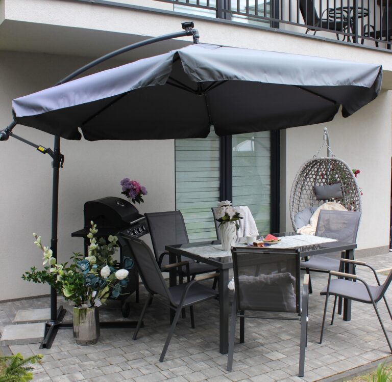 Vrtni senčnik 6 segmentov 350 cm s prevleko – Plonos PL-880 siv