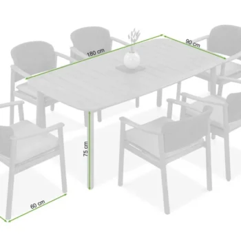 | Jedilna miza | 180 cm × 90 cm × 75 cm | 26 kg |