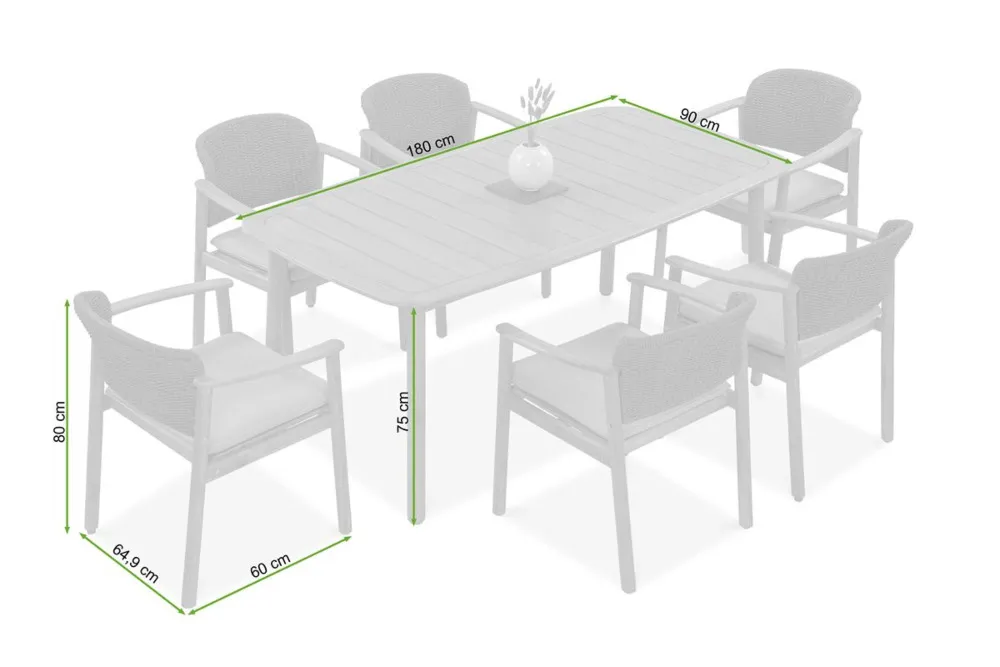 | Jedilna miza | 180 cm × 90 cm × 75 cm | 26 kg |