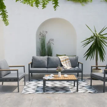 Uživajte v razkošju in udobju z vrtno garnituro EDISON CAFFE Dark Gray – idealno izbiro za tiste, ki ne pristajajo na kompromise, ko gre za stil in kakovost življenja na prostem.
