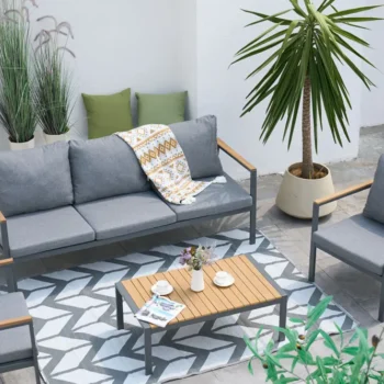 Blazine iz olefinske tkanine (200 g) so odporne na vlago, UV-žarke in vsakodnevno obrabo – idealne za dolgotrajno bivanje na prostem. -