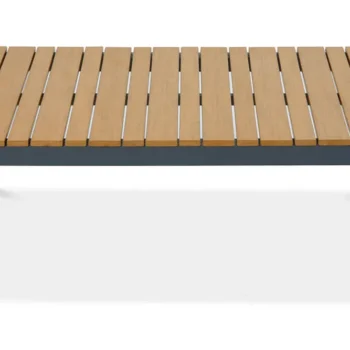 Mizna plošča in nasloni za roke iz poliwooda združujejo naravni videz lesa z odpornostjo in enostavnostjo vzdrževanja plastike. -