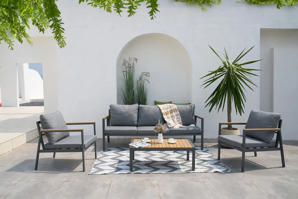 Uživajte v razkošju in udobju z vrtno garnituro EDISON CAFFE Dark Gray – idealno izbiro za tiste, ki ne pristajajo na kompromise, ko gre za stil in kakovost življenja na prostem.
