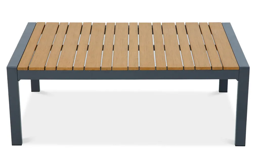 Mizna plošča in nasloni za roke iz poliwooda združujejo naravni videz lesa z odpornostjo in enostavnostjo vzdrževanja plastike. -