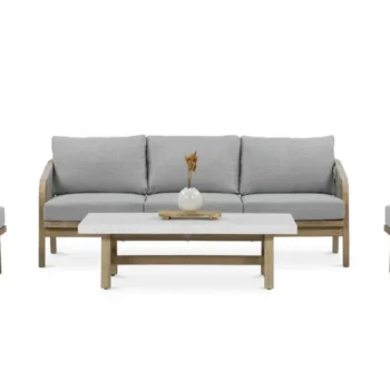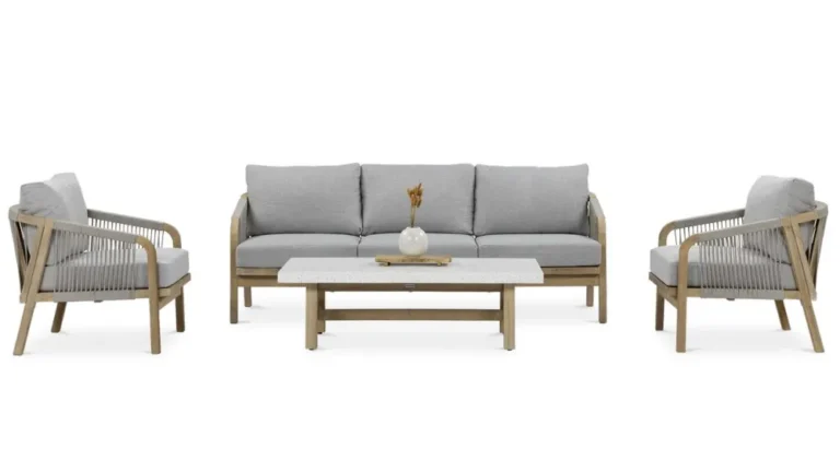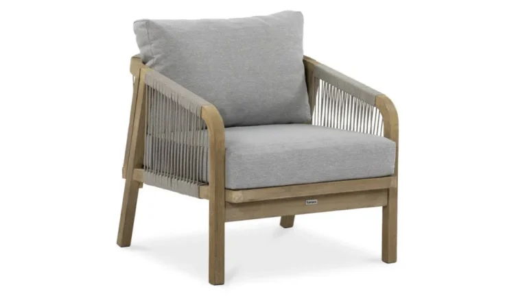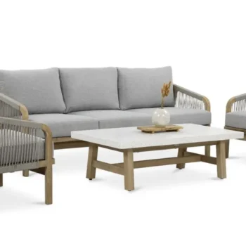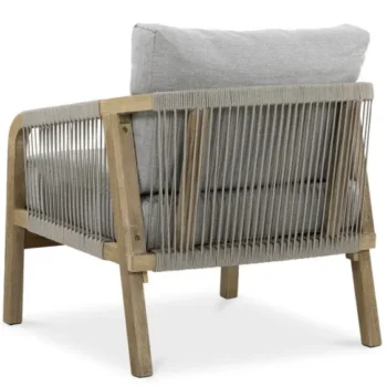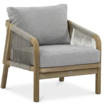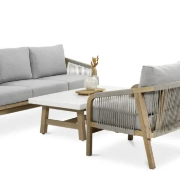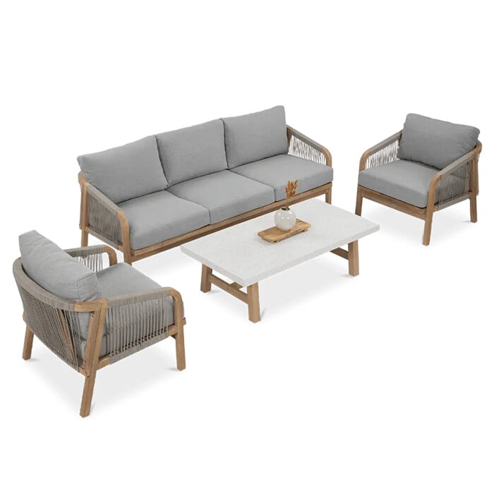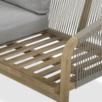 Nežen kontrast dimljeno belega lesa in blazin, odpornih na UV-žarke in umazanijo, zagotavlja prefinjeno udobje.