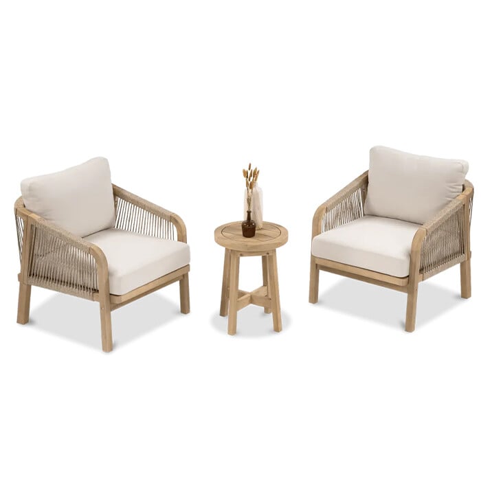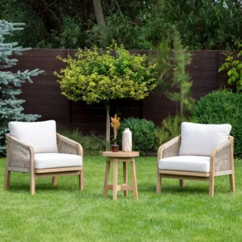 Doživite vrhunsko uživanje na prostem s kavarno Marigold 2+1 Caffe – Furrore . Ta ekskluzivni komplet dveh foteljev in klubske mizice združuje prefinjen dizajn, udobje in vzdržljivost ter ustvarja intimno oazo na vašem balkonu, terasi ali manjšem vrtu.