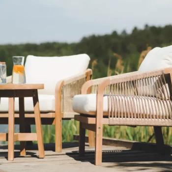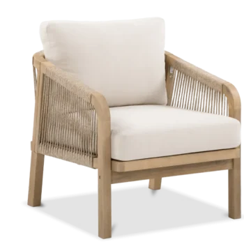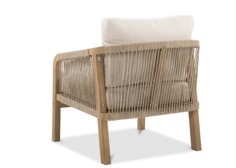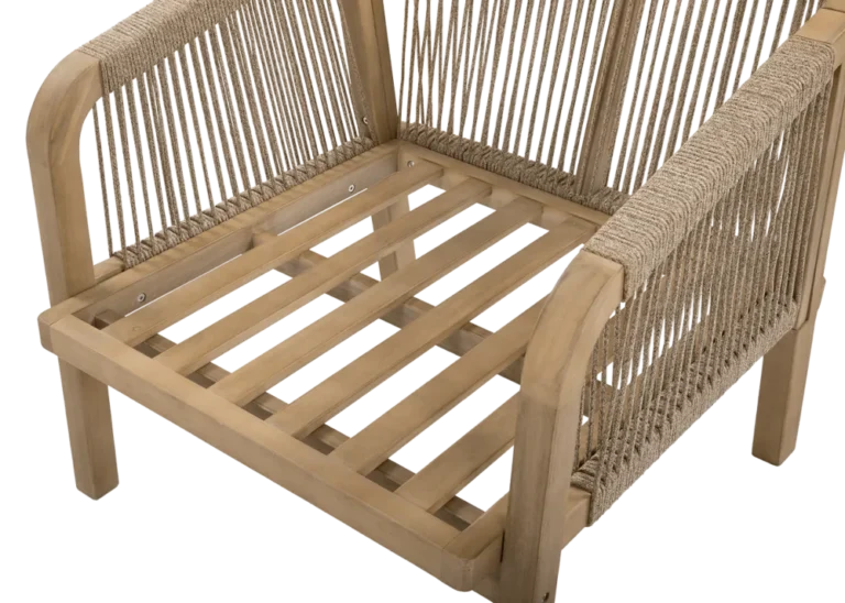 Udobni naslanjači s tkano vrvjo in mehkimi blazinami