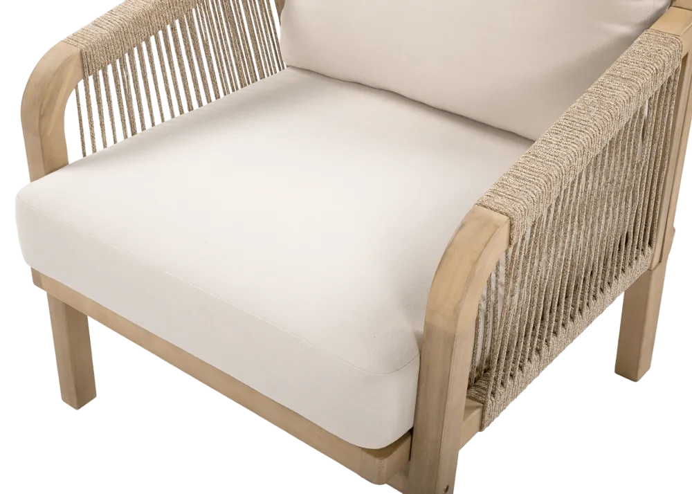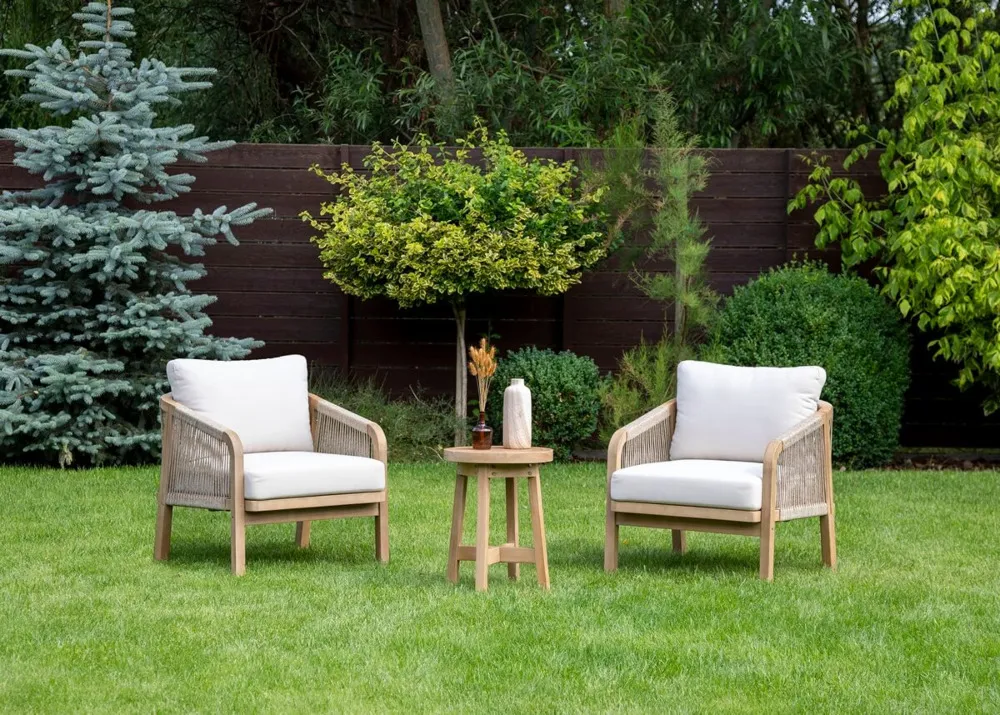 Udobni naslanjači s tkano vrvjo in mehkimi blazinami