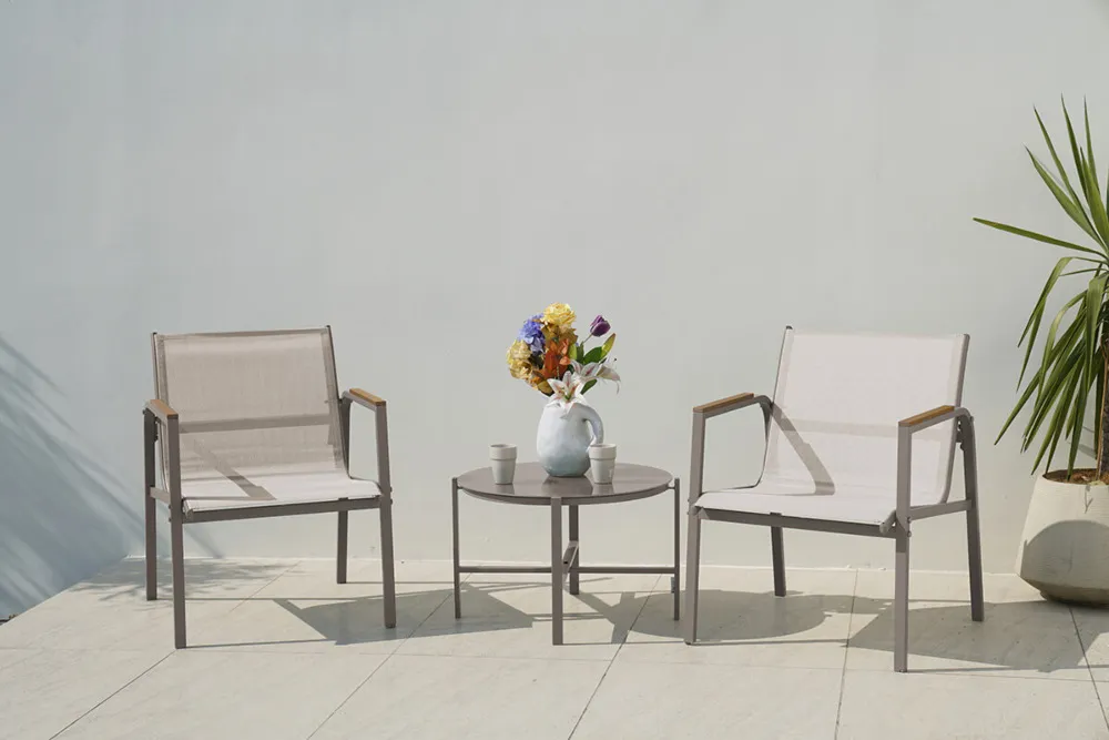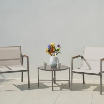 Dodajte svojemu balkonu, vrtu ali terasi prefinjen pridih z naravnim kompletom MANGO BALCONY . Ta elegantni komplet 2+1 je popolna mešanica vzdržljivosti, udobja in sodobnega dizajna – idealen za sproščanje na prostem skozi vse letne čase.