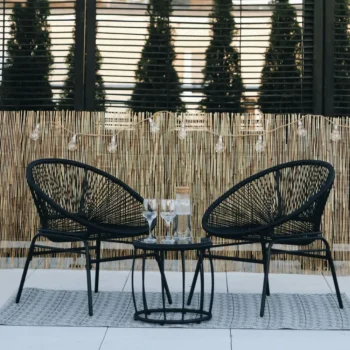 Dva udobna naslanjača in praktična klubska mizica se odlično podajo v različne prostore – od mestnih balkonov do prostornih teras.
