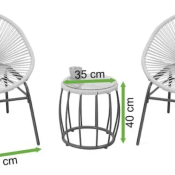 Dobrodošli v vašem novem kotičku za sprostitev! Vrtni komplet MAYA 2+1 Sunset združuje prefinjen dizajn, vrhunsko funkcionalnost in enostavno vzdrževanje, zaradi česar je popolna izbira za balkon, teraso ali vrt.