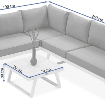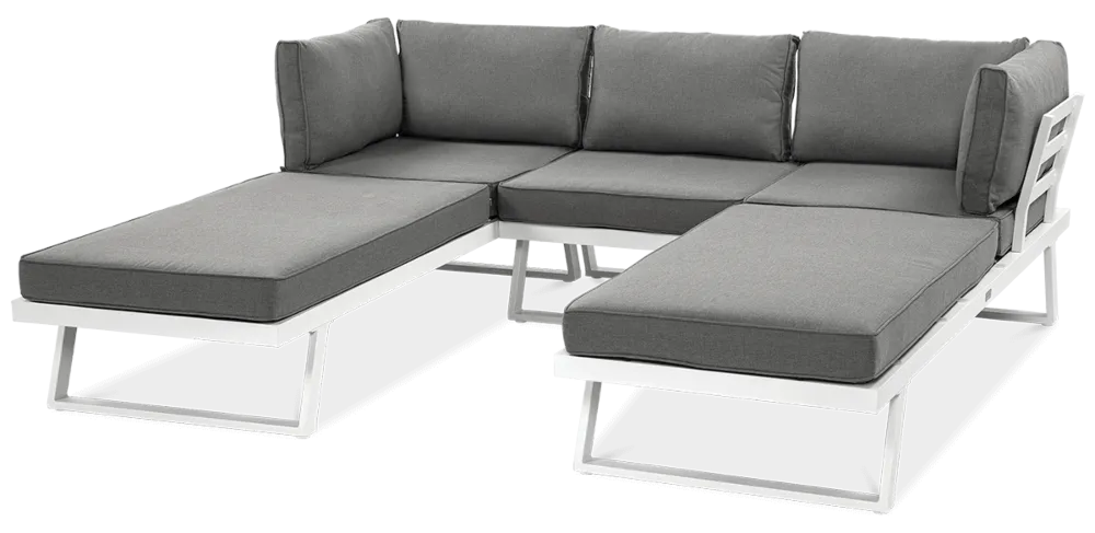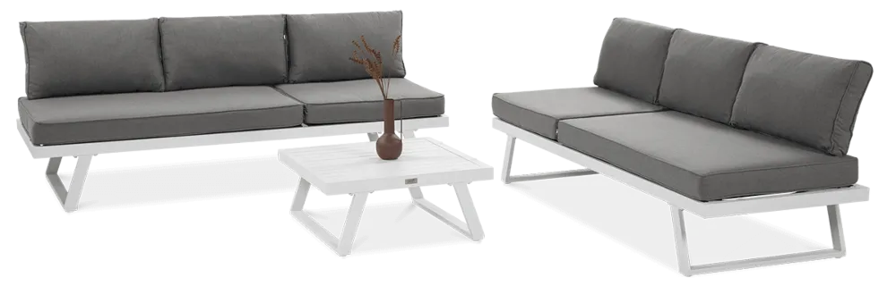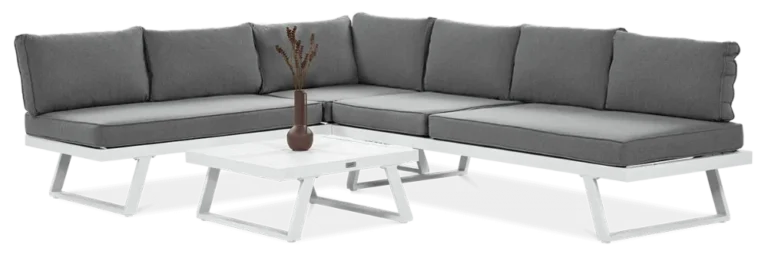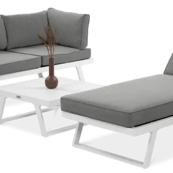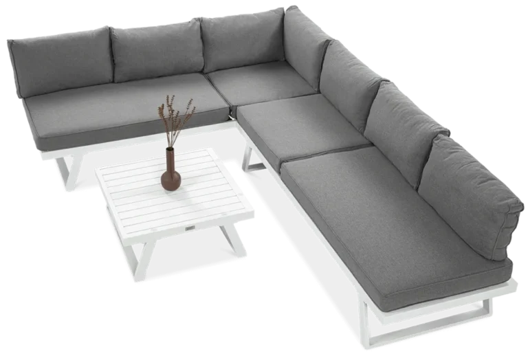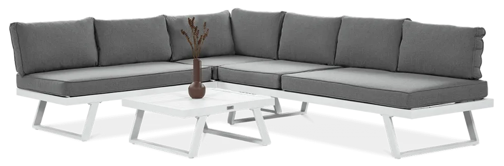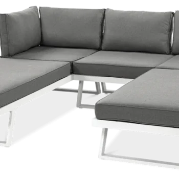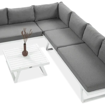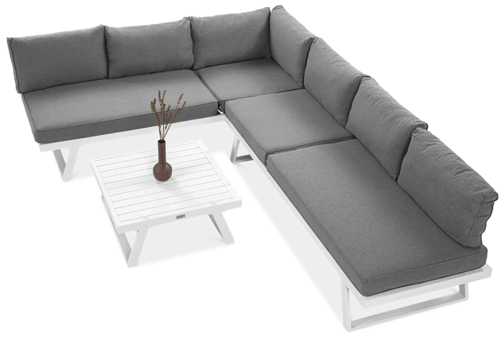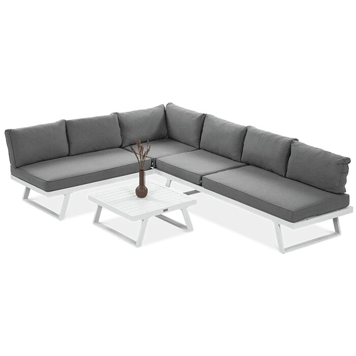 Uživajte v prefinjenem in udobnem zunanjem prostoru z modularno kotno sedežno garnituro Midway . Bela eleganca, robustna aluminijasta konstrukcija in možnost proste razporeditve modulov naredijo ta komplet idealno rešitev za moderne terase in vrtove.