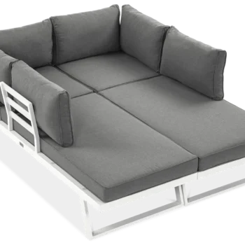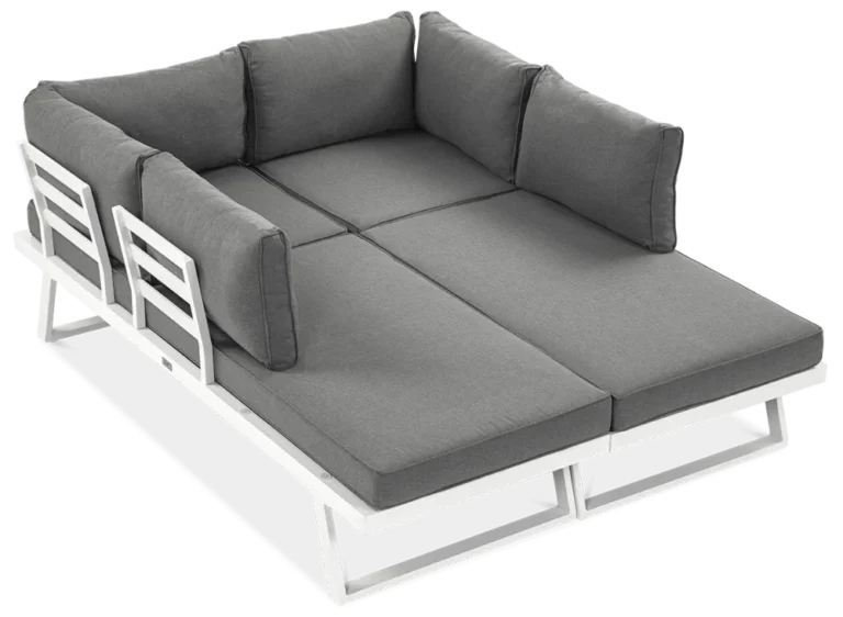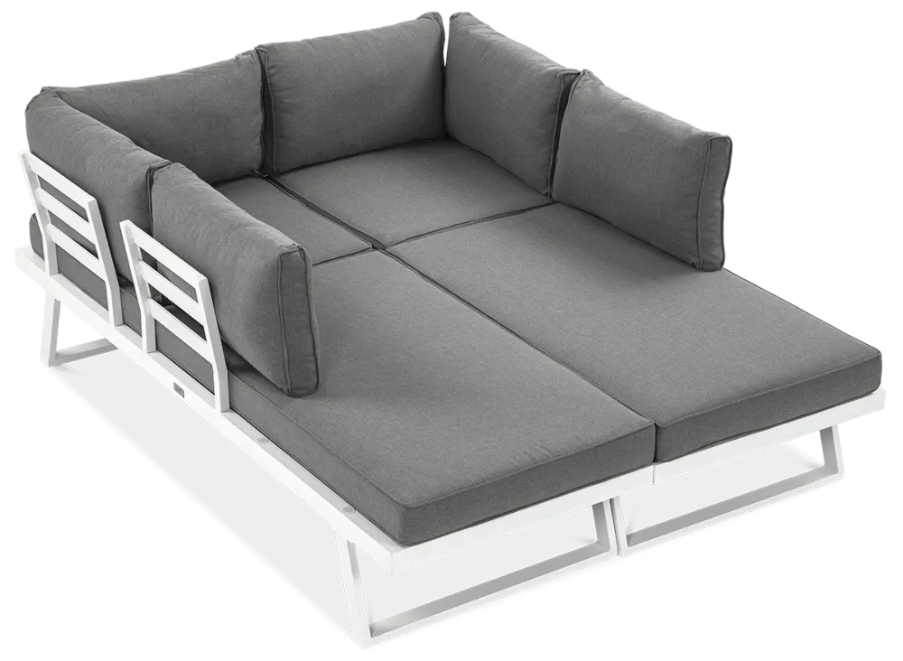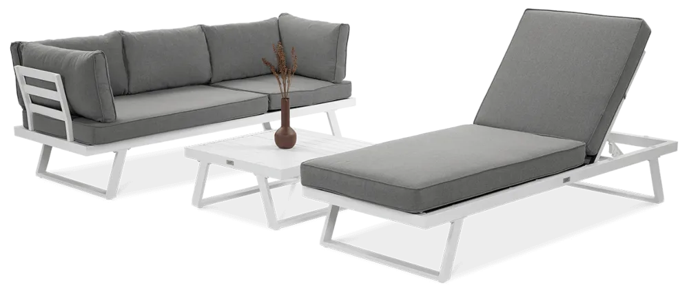 Trije moduli – dva kotna in en osrednji del – vam omogočajo, da komplet prilagodite svojemu prostoru in življenjskemu slogu. Osrednji modul se lahko uporablja tudi kot ležalnik. -