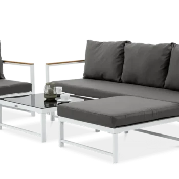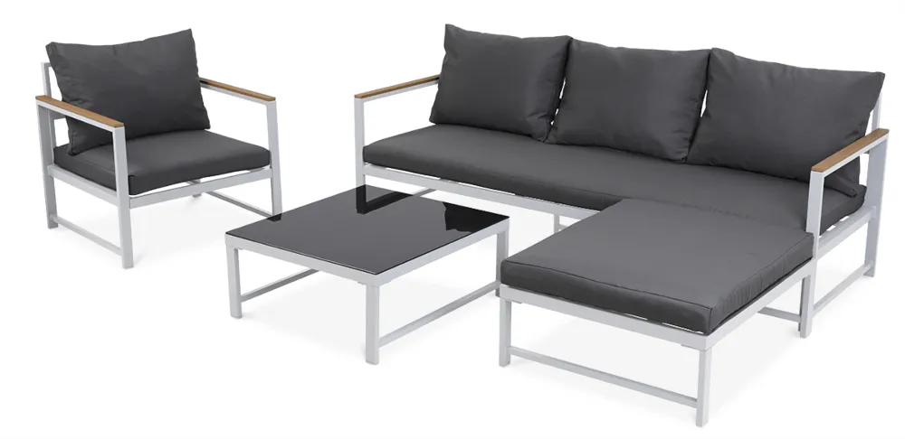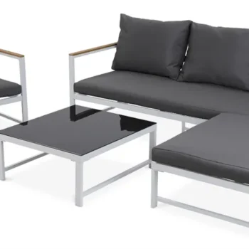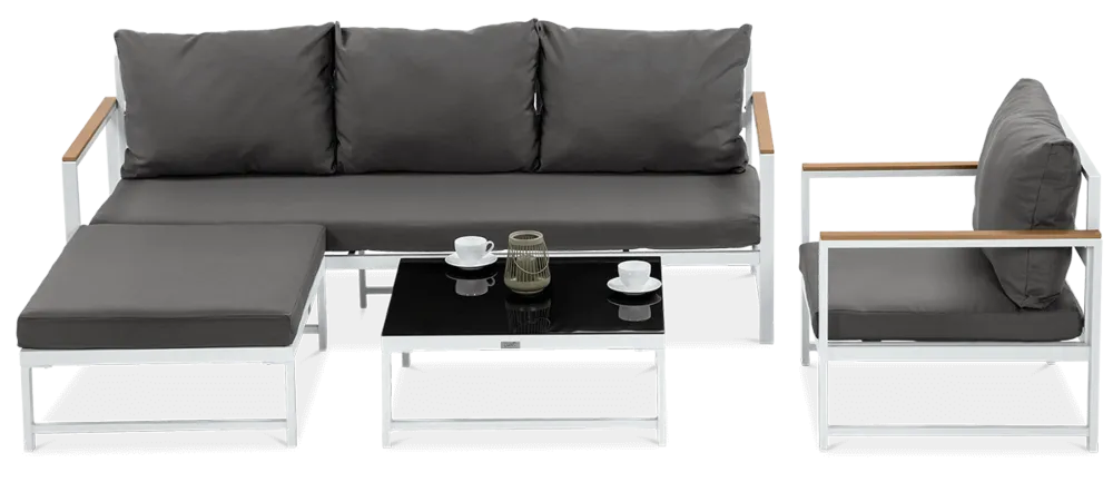 Dodajte pridih razkošja in sodobnega dizajna svoji terasi, balkonu ali vrtu s kotno sedežno garnituro in naslanjačem ORLANDO v temno sivi barvi. Ta elegantna kombinacija visokokakovostnih materialov, udobja in prilagodljivosti ponuja več kot le vrtno pohištvo – ponuja sproščujoč prostor, ki bo navdušil vsakega gosta.