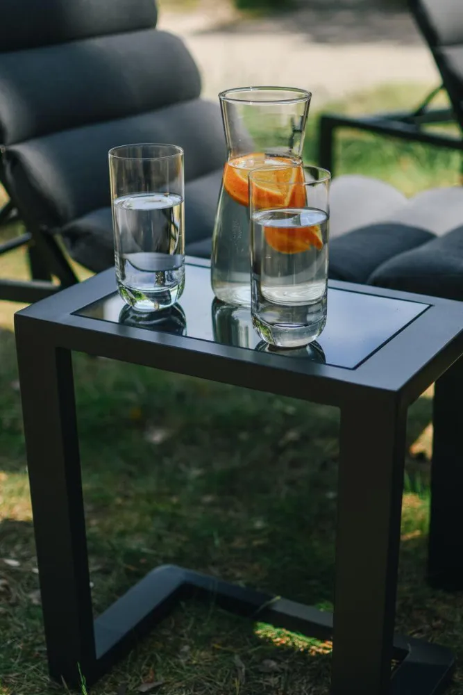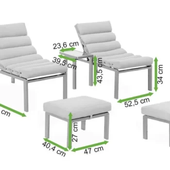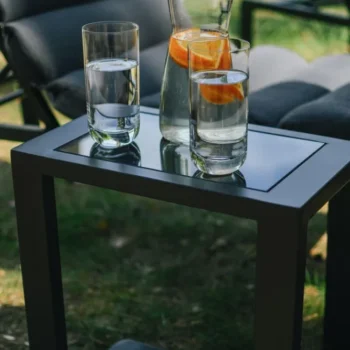 Pozabite na običajno vrtno pohištvo – sedežna garnitura ORSEY DUO Graphite je revolucionirala dizajn in udobje. Sestavljena je iz dveh razkošnih naslanjačev, dveh taburejev in mize s stekleno ploščo, ki vnese prefinjenost v vsak vrt, balkon ali teraso.