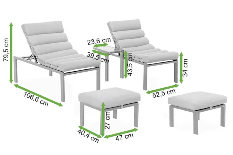 | Fotelj | D 106,6 cm × Š 52,5 cm × V 34/79,5 cm |