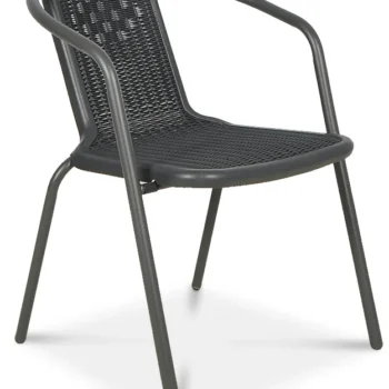 Trpežna konstrukcija : Prašno barvano jeklo je odporno proti koroziji in UV-sevanju, oblikovani detajli iz ratana pa zagotavljajo dodatno stabilnost.