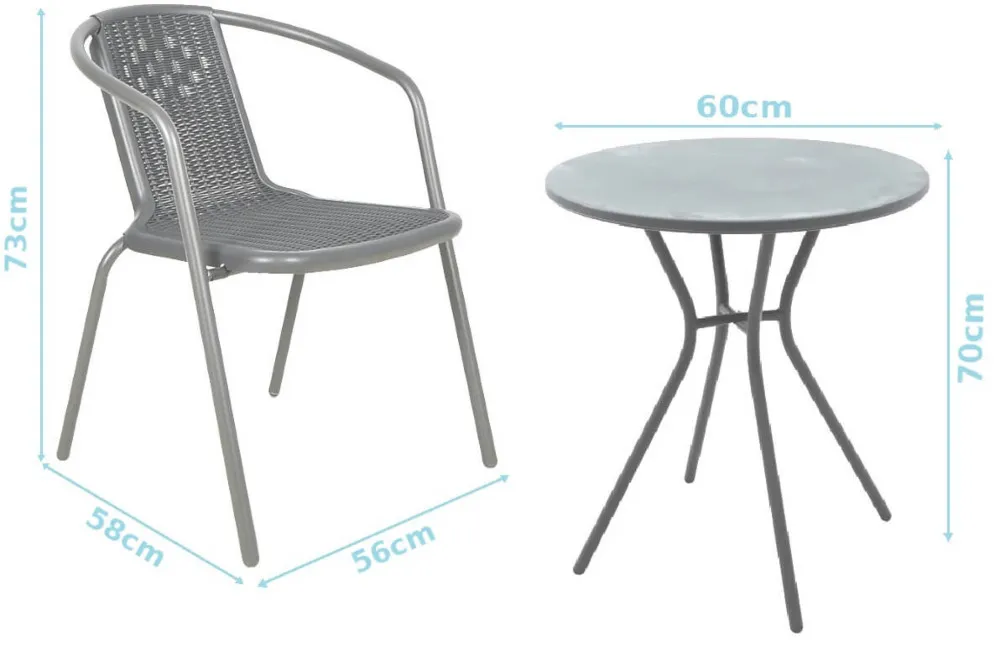 Komplet 2+1 za maksimalno prilagodljivost : dva praktična, zložljiva stola in okrogla miza so idealni za majhne in velike balkone.